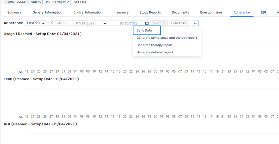 - We tag the patient with the identifiers PAP-Modem or PAP-No modem. The patient tag/identifier will be visible on all the list pages and in the patient profile.
